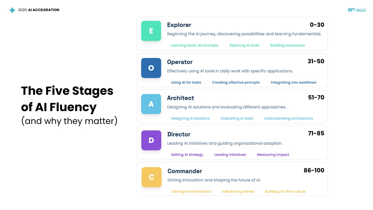 You’re leading with AI, automating, integrating, and driving strategy across teams.Commander (86–100)